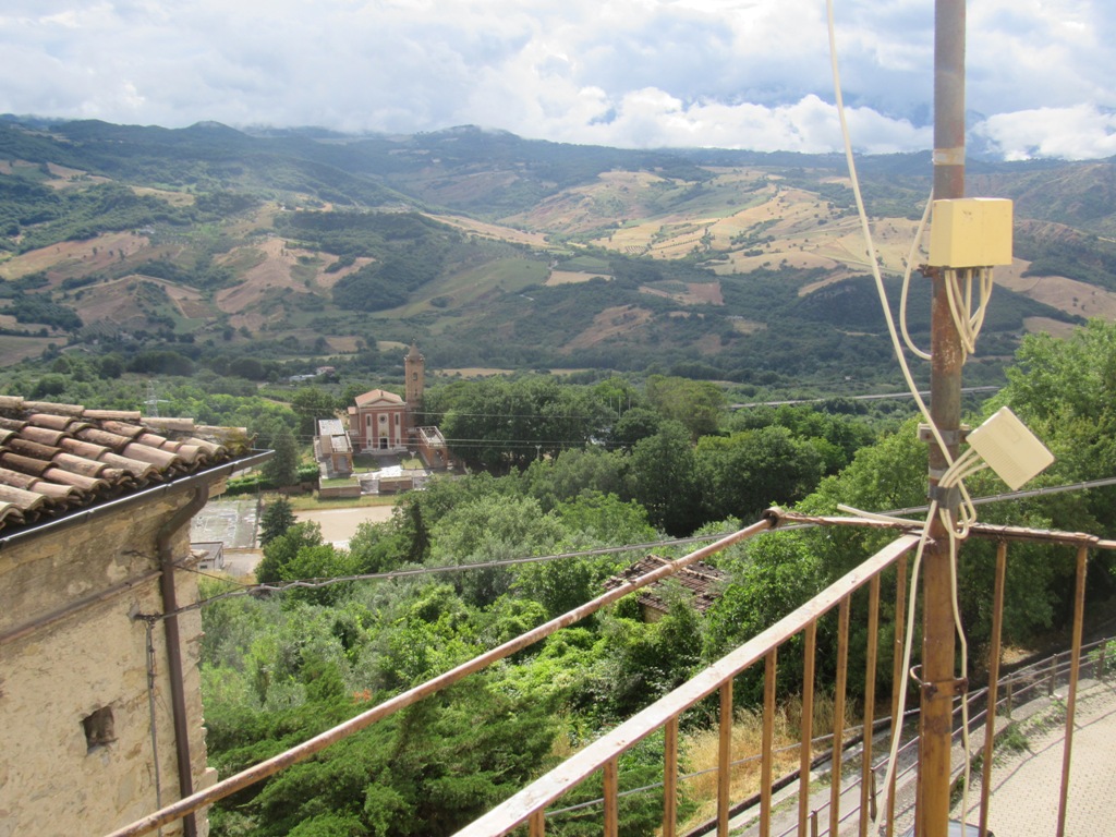 San Vito, Abruzzo. 300sqm detached town house, 6 beds, 80sqm terrace, 500sqm garden, 5km to the beach and train, peaceful, mountain and sea views. Located in Sant’Apollinare, a village close to the thriving, tourist, beach town of San Vito Chietino, with basic shops, restaurants and a couple of bars, within 300 meters of the house. The famous Costa dei Trabocchi beach fron is 5km from the house and there is good public transport to access the beach and the City of Lanciano, 12km from the house. The house is built on 3 floors, with an ample attic space. There is also an out building, built to the boundaries of the 500 sqm garden, which can be rebuilt into a 100sqm 2 floor house, or a swimming pool, perhaps in an elevated position over changing rooms, or demolished to enjoy the garden with a barbeque area. There are open mountain and sea views which are superb. The roof is flat with amazing views offering a well maintained,80sqm sun terrace. The house has mains gas central heating, water, electricity and sewage connections.