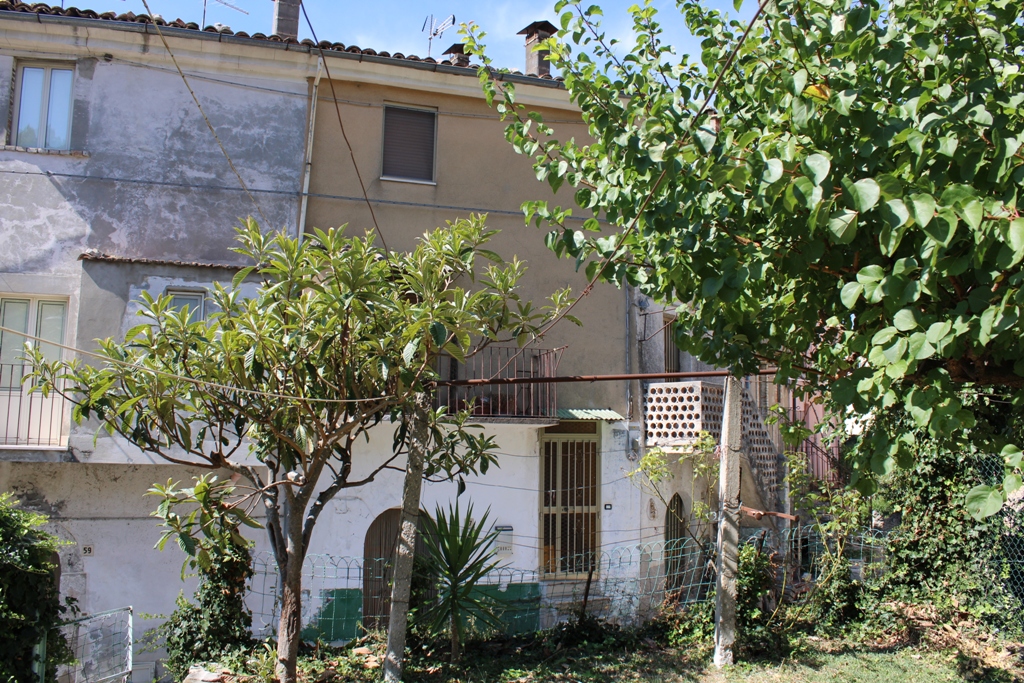 Civitella Messer Raimondo, Abruzzo. 3 bedroom town house, finished to modernise, terrace, garden, parking, cellars, mountain views, peaceful location. We presented town house in the outskirts of 2 lively towns, with a front garden and back patio. I feels detached, but is actually connected to the neighbour’s garage. The property has a gate that opens to the drive and front garden. The drive drops down, along side the house to 2 cellars and an outbuilding for plenty of parking, and the front garden of 20sqm with 3 fruit trees and a back patio, presently, dominated by a fig tree. The main house is light with 3 ground floor rooms, with fireplace and one could be a 3rd bedroom. There are internal stairs to the first floor, 2 bedrooms and a bathroom. On the first floor there is access to a wonderful terrace with open beautiful views of the surrounding mountains and down to the distant sea. Under the house are 2 cellars, with a second fireplace and bathroom, which could be converted. There is also the outbuilding has 2 floors, and it can be rebuilt, at the moment the roof has collapsed onto the first floor ceiling. The house has mains gas central heating. There used to be a diesel central heating system so, a diesel tank and old boiler have been left and could be disposed of to create more room. Located 2km to Civitella Messer Raimondo, 2.5km to Lake Casoli, 3km to the lively town of Fara San Martino, 8km to Casoli, 30km to the city of Lanciano, 30 minutes drive to the beach, 601 minutes to Pescara airport and 3 hours to Rome.